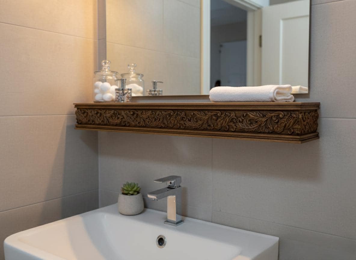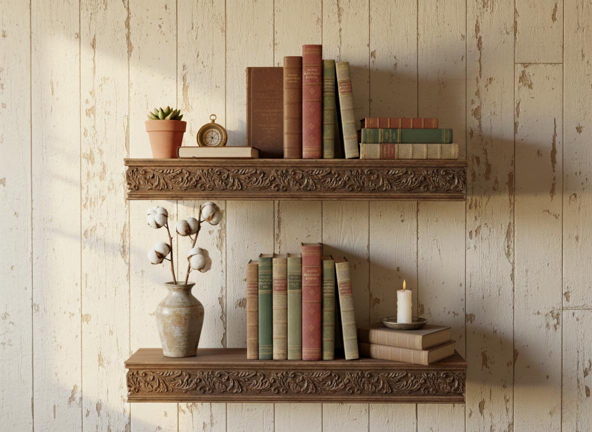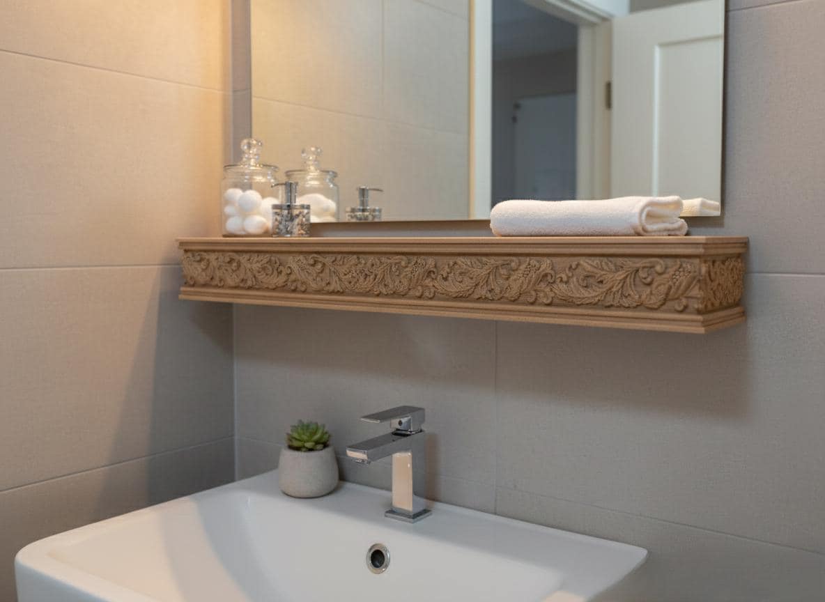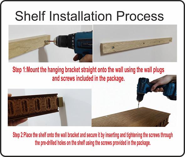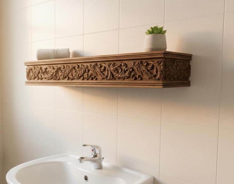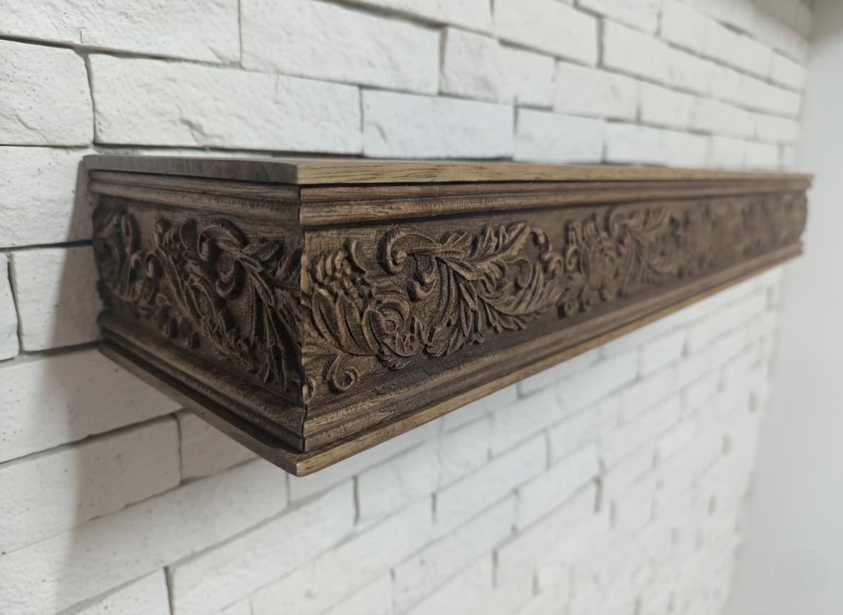 Hand Carved Wooden Wall Shelf