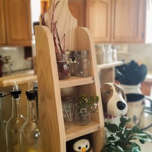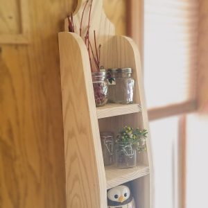 A cute little decorative shelf that can be hung up or sat on a counter. Can be styled for decor or is sturdy enough to handle day to day use. Created on a little farm in the Treasure Valley, each piece is made with love by Jeff, with the help of his wife Julie. Pieces finished to order, available in the colors pictured, or we can leave it ready for you to customize. If you love the natural oak wood, we can add a clear seal as well.